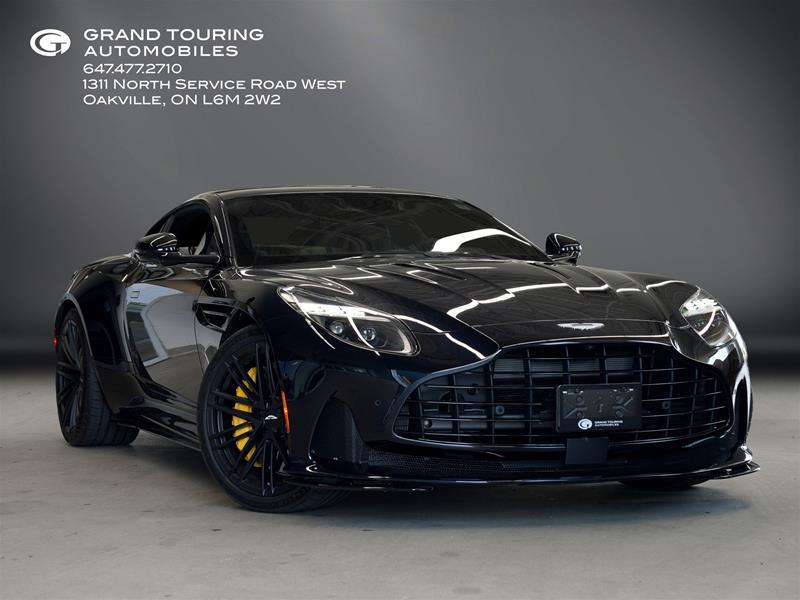 2024 Aston Martin DB12 Coupe. Finished in a stealthy Ultramarine Black exterior with Dark Knight/ Ivory interior. The Aston Martin DB12 Coupe is a new generation of Aston Martin's iconic DB series, designed to deliver thrilling performance, luxury, and cutting-edge technology. It combines stunning British craftsmanship with exceptional engineering, making it an exciting addition to the world of luxury grand tourers. - Engine Type: The DB12 Coupe is powered by a 4.0-liter twin-turbocharged V8 engine, developed in collaboration with Mercedes-AMG. - Power Output: The engine produces 680 horsepower (507 kW) and 800 Nm (590 lb-ft) of torque. - Transmission: It is paired with an 8-speed automatic transmission that drives the rear wheels. - 0-100 km/h (0-62 mph): The DB12 accelerates from 0 to 100 km/h in 3.6 seconds. - Top Speed: It has a top speed of around 325 km/h (202 mph), providing exhilarating straight-line speed. - Exhaust Note: The engine delivers a distinctive, aggressive exhaust note, typical of Aston Martin’s performance models. The DB12 features a bold and dynamic exterior design, with sleek lines, a wider stance, and a more sculpted rear end. The front grille is larger, enhancing its road presence, while the aerodynamic design improves stability at high speeds. Factory Options Included: - 21-Inch Multi-Spoke Forged Wheels in Satin Black - Carbon Ceramic Brakes - Yellow Brake Calipers - Gloss Black Lower and Upper Exterior Pack - Gloss Black Painted Roof - Gloss Black Front Grille - Smoked Tail Lights - Accelerate Duotone Interior - Leather Interior - Colour Palette - Satin 2x2 Twill Carbon Fiber IP Trim Inlay - Dark Brushed Aluminium Centre Trim Inlay - Ventilated Seating - Contrast Stitching - Sports Heated Steering Wheel - Bowers & Wilkins Audio System - Functional Umbrella and Holder The 2024 Aston Martin DB12 Coupe represents a new chapter in the brand’s storied legacy of performance and luxury. With a powerful twin-turbo V8, cutting-edge technology, and a refined interior, it offers both thrilling performance and supreme comfort. Whether cruising on a long-distance drive or navigating winding roads, the DB12 is designed to deliver an unforgettable driving experience, making it a standout in the world of luxury grand tourers. At Grand Touring Automobiles, we ensure that each vehicle undergoes a comprehensive inspection in-house by our factory-trained technicians. As the leading Factory Authorized Dealer for Aston Martin, Automobili Pininfarina, Bentley, Bugatti, Hedley Studios, Hennessey, Himalaya, Jaguar, Koenigsegg, Lamborghini, Land Rover, Polestar, Rimac, Rolls-Royce, and Zagato, we proudly serve the Greater Toronto Area, Oakville and Uptown. Thank you for choosing Grand Touring Automobiles. Allow us to elevate your experience!